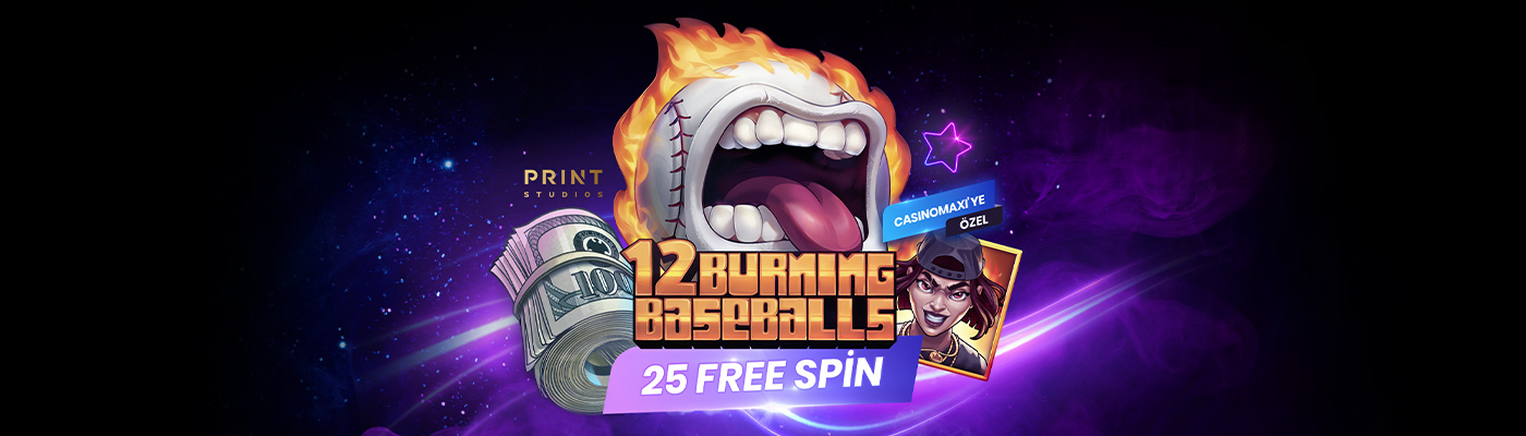 - 12 Burning Baseballs’ta geçerli 25 Free Spin kaza.